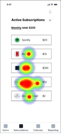 All three competitors excelled in recognition rather than recall: the user can view all their subscriptions/expenses and related data in one place. They struggled in consistency and standards: used inconsistent terminology and don’t allow users to connect their personal checking/credit card accounts to easily import their expenses.