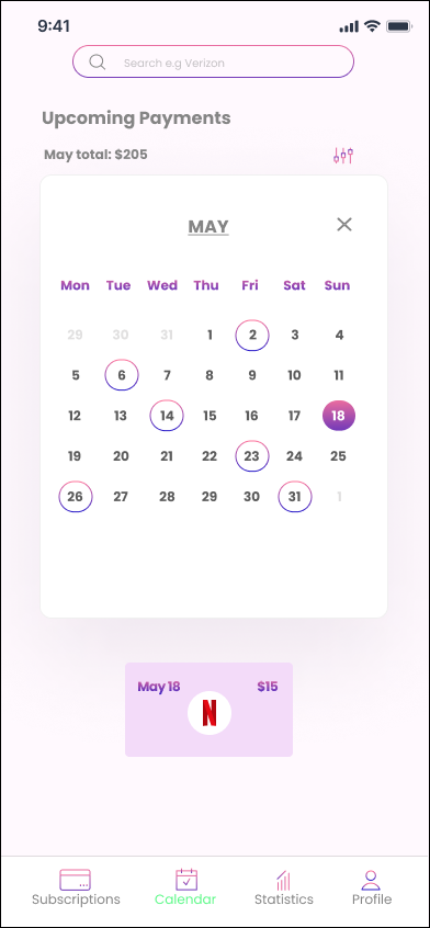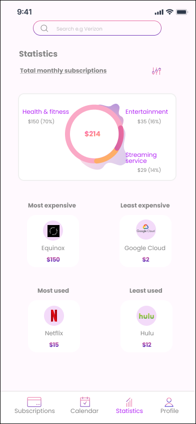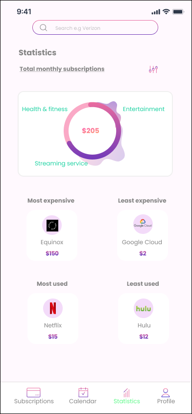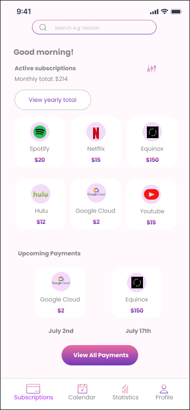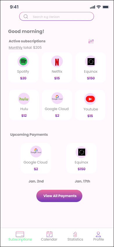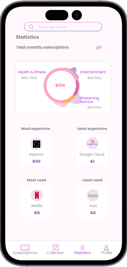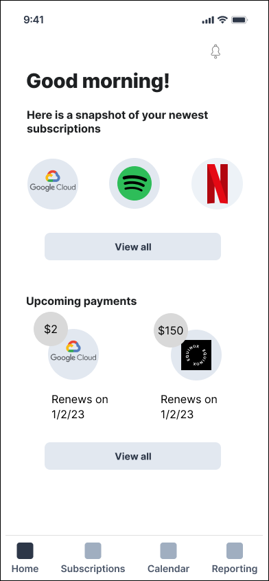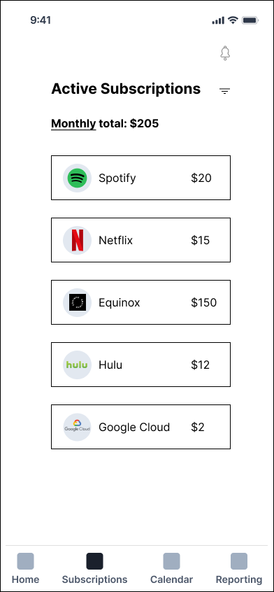 Display subscriptions in one place to give users a comprehensive overview of their spending habits.